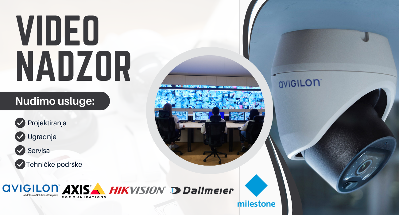 "Mnogobrojna istraživanja pokazala su smanjenje broja krivičnih djela nakon instalacije sustava videonadzora". Na području videonadzora radimo sa odabranim proizvođačima ove vrste opreme.