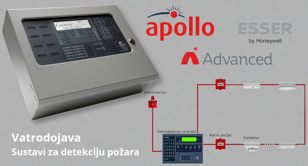 "Statistički je dokazano da će svaka osoba u životu barem jednom doživjeti požar." Ovdje radimo s opremom proizvođača Advanced, Apollo i Esser koji već godinama predstavljaju vodeće proizvođače na ovom polju.